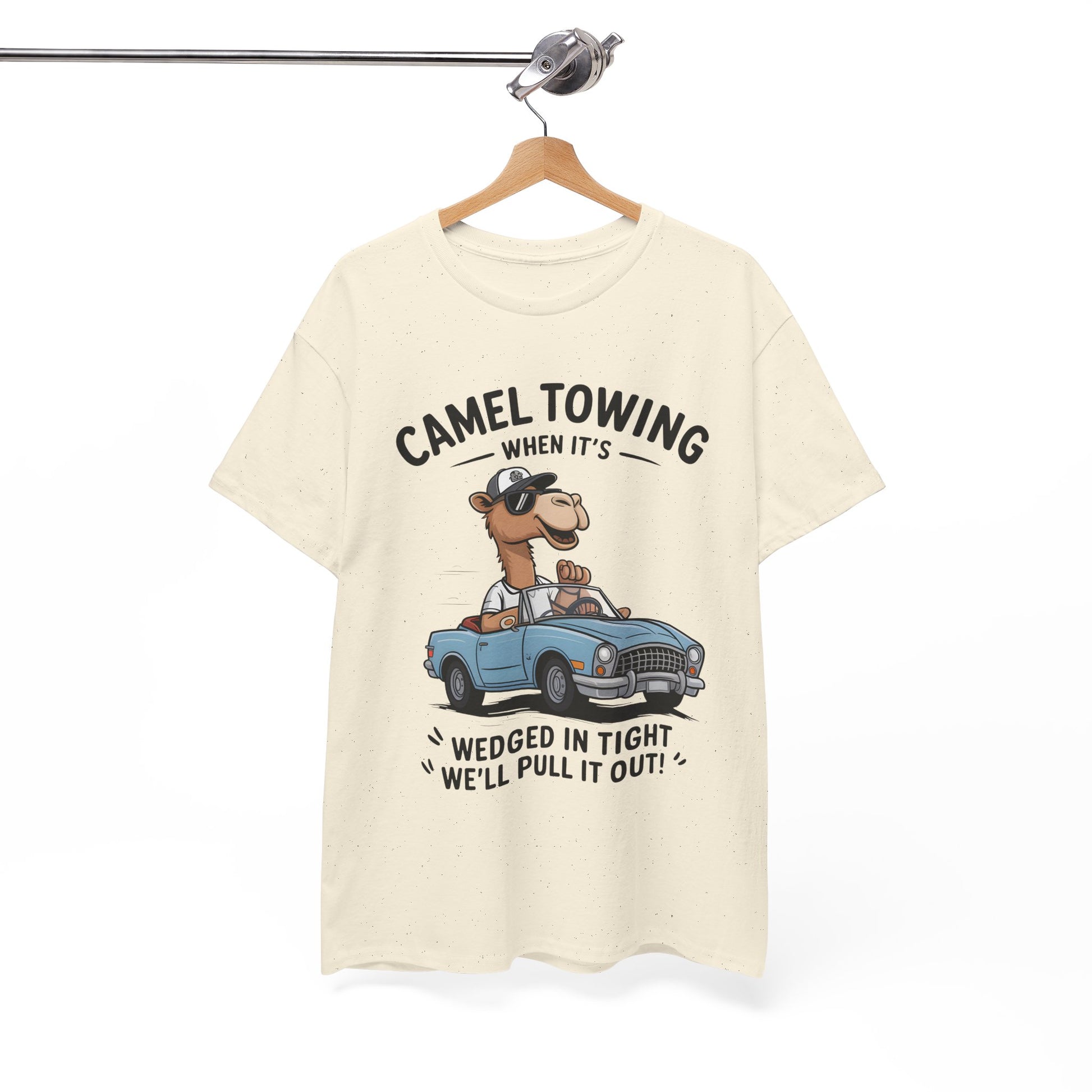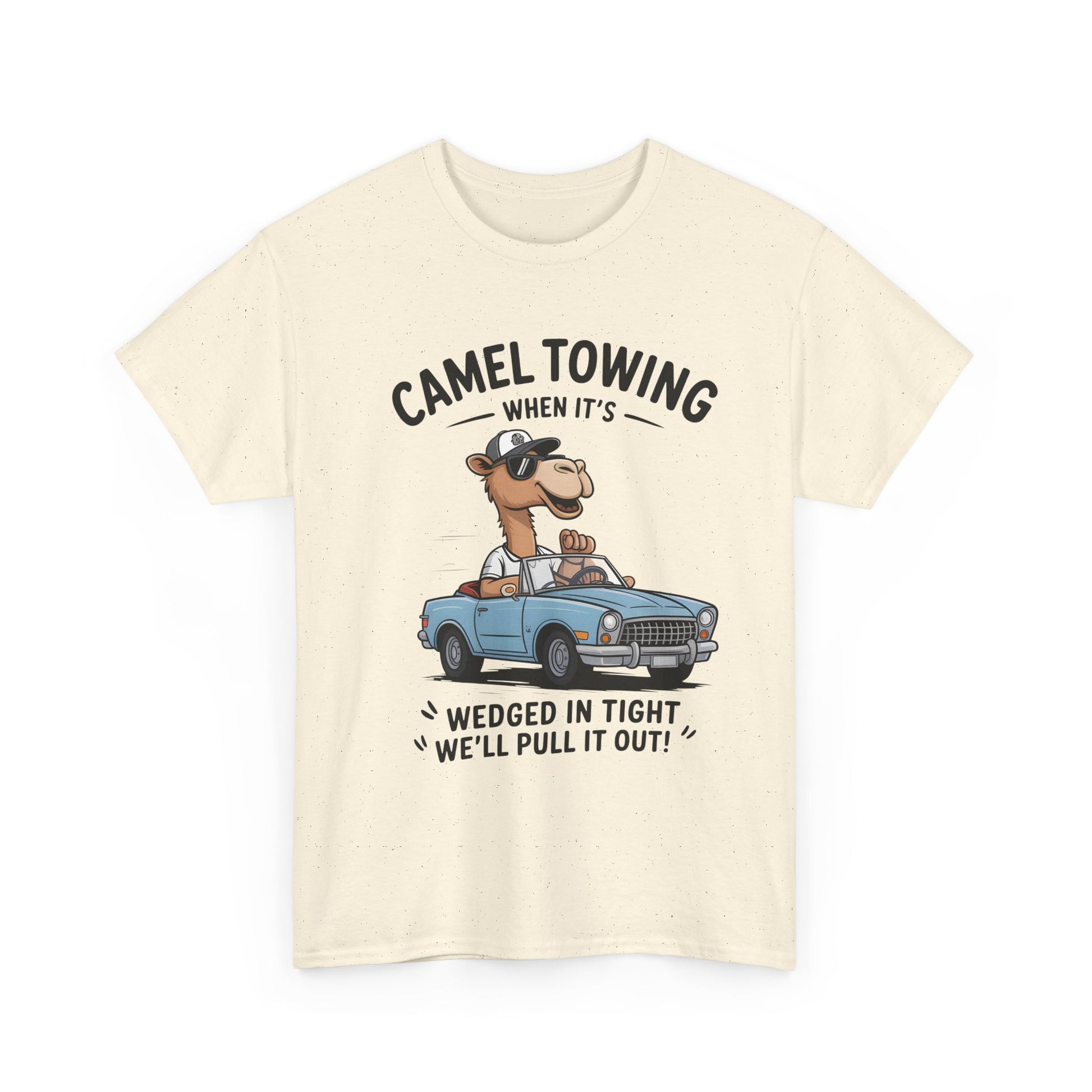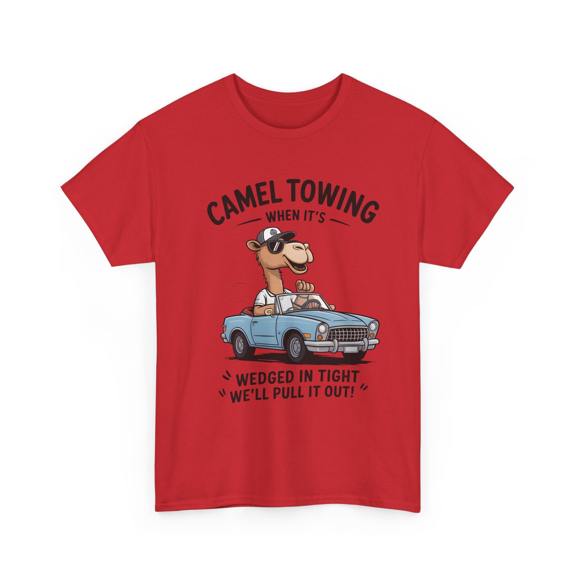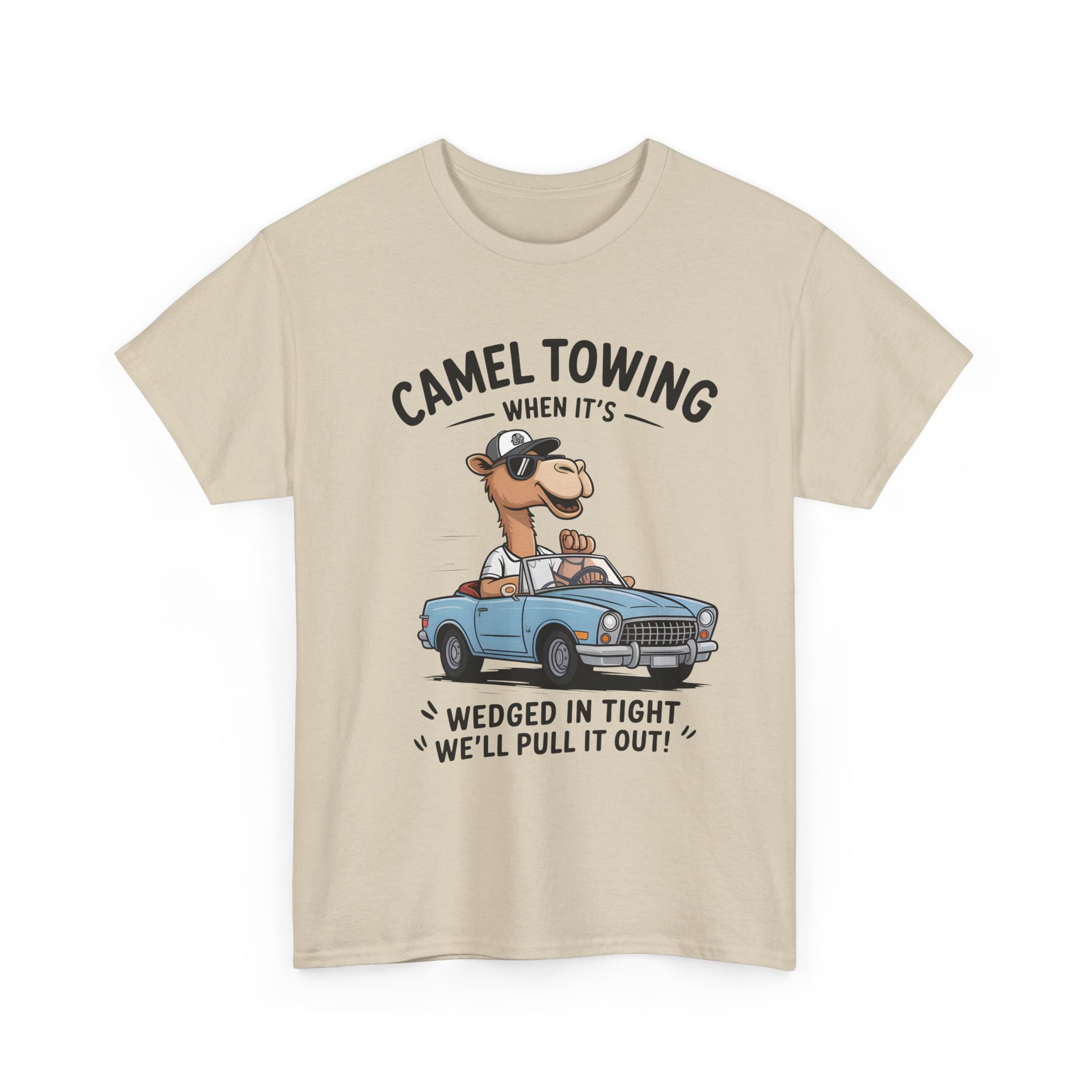 Camel Towing Tee — "When It's Wedged In Tight We'll Pull It Out" Funny Camel Mechanic T-Shirt