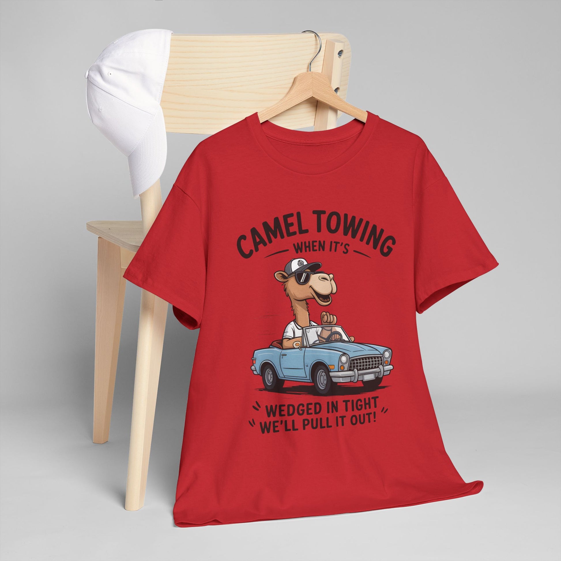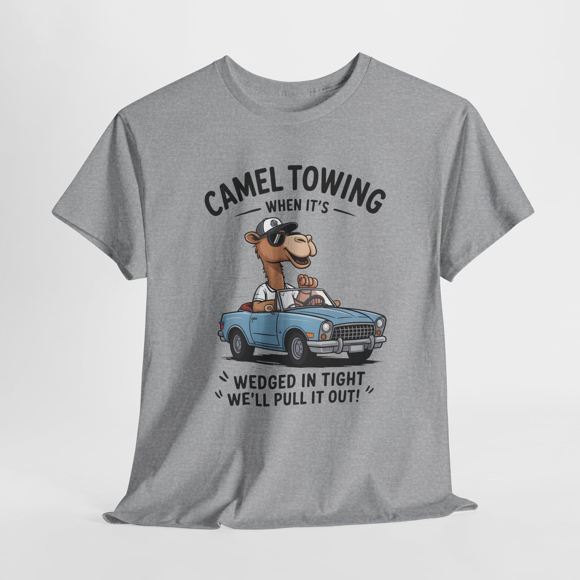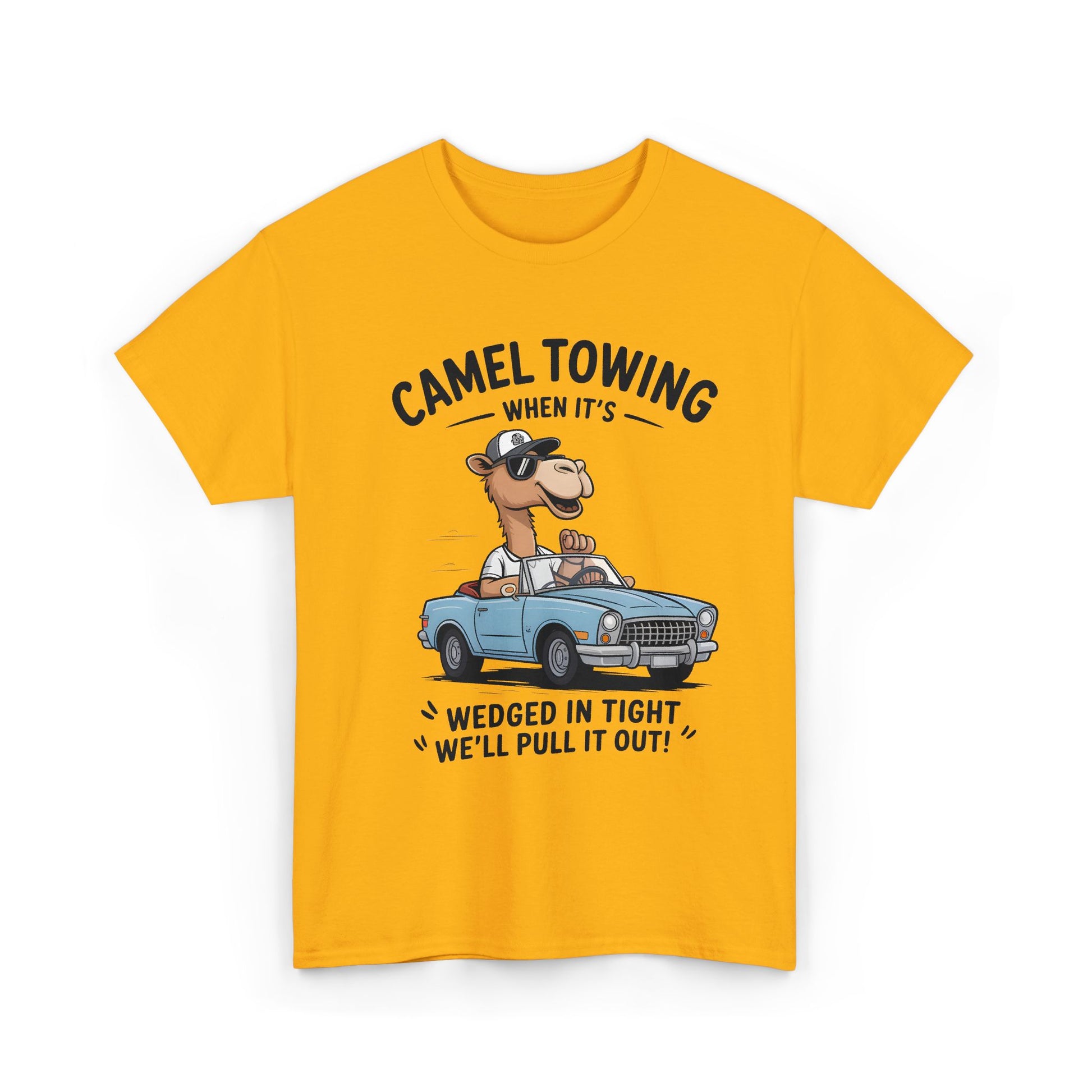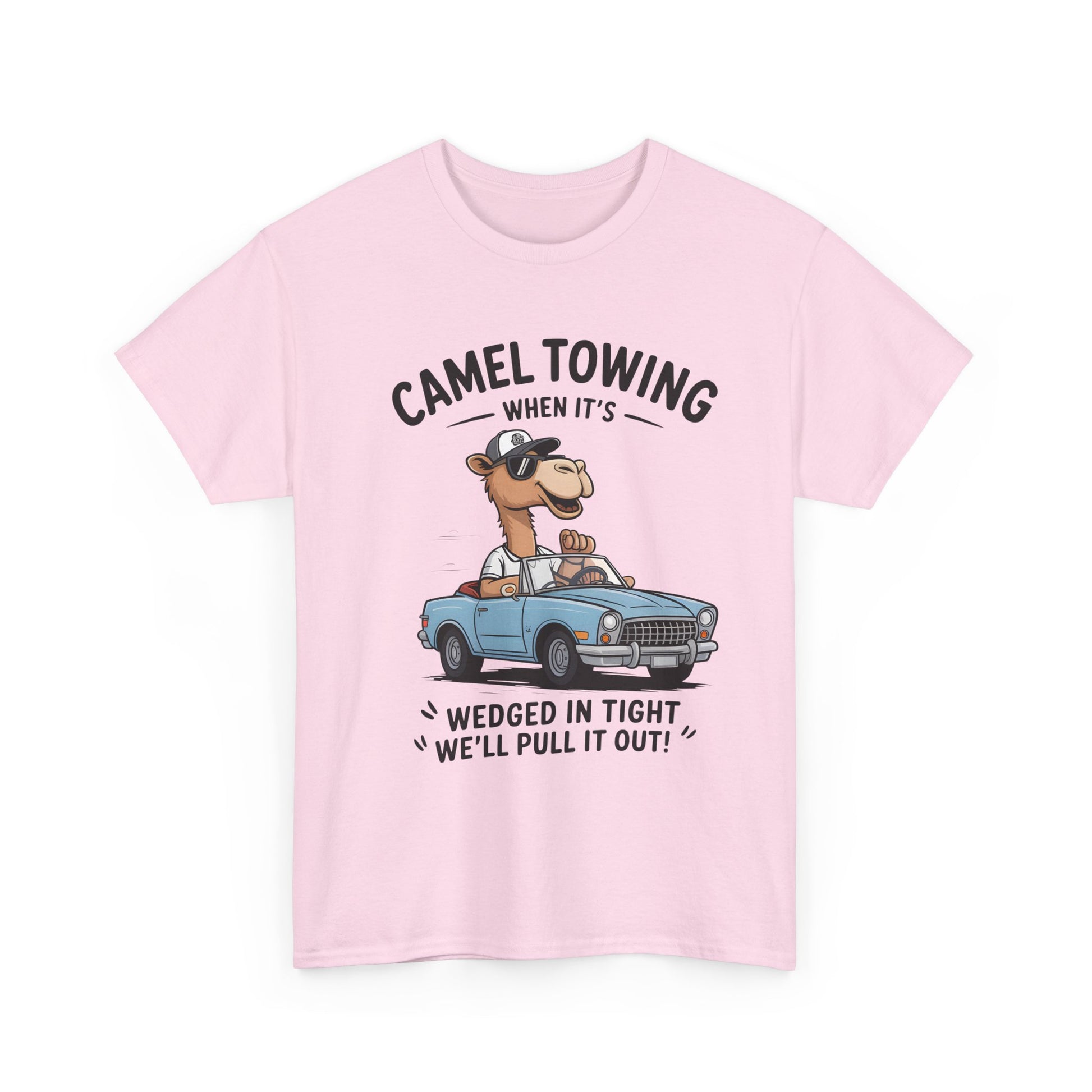 Camel Towing Tee — "When It's Wedged In Tight We'll Pull It Out" Funny Camel Mechanic T-Shirt