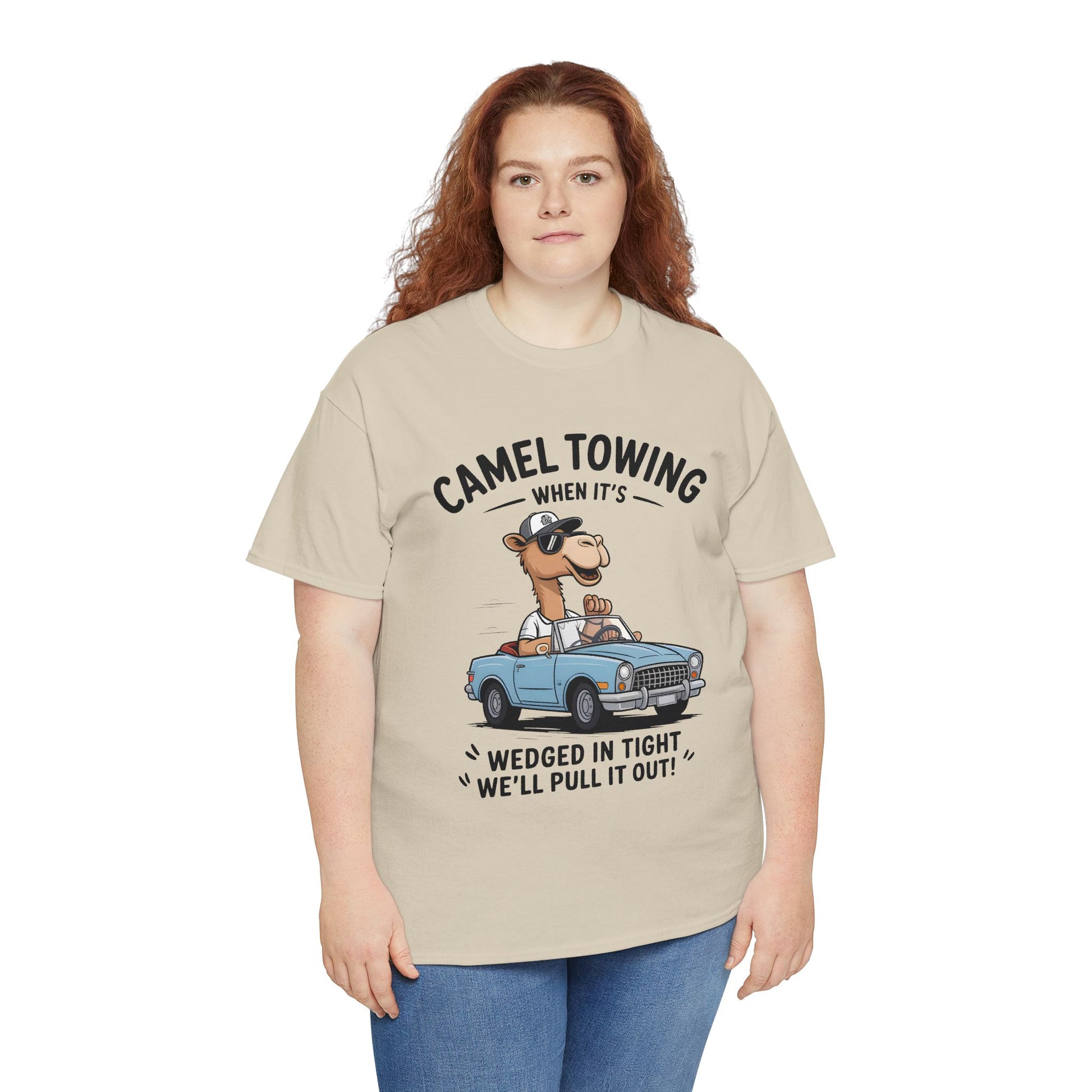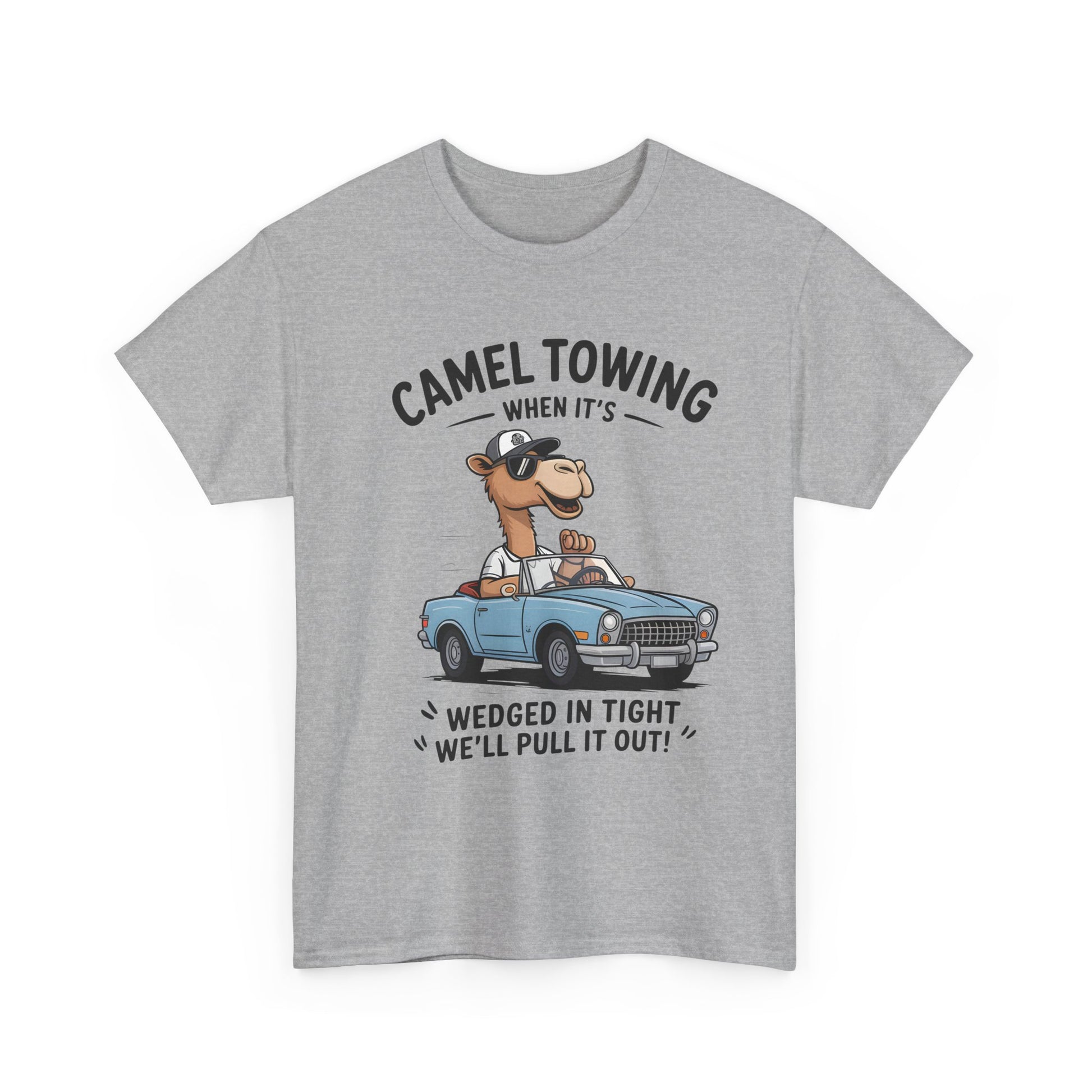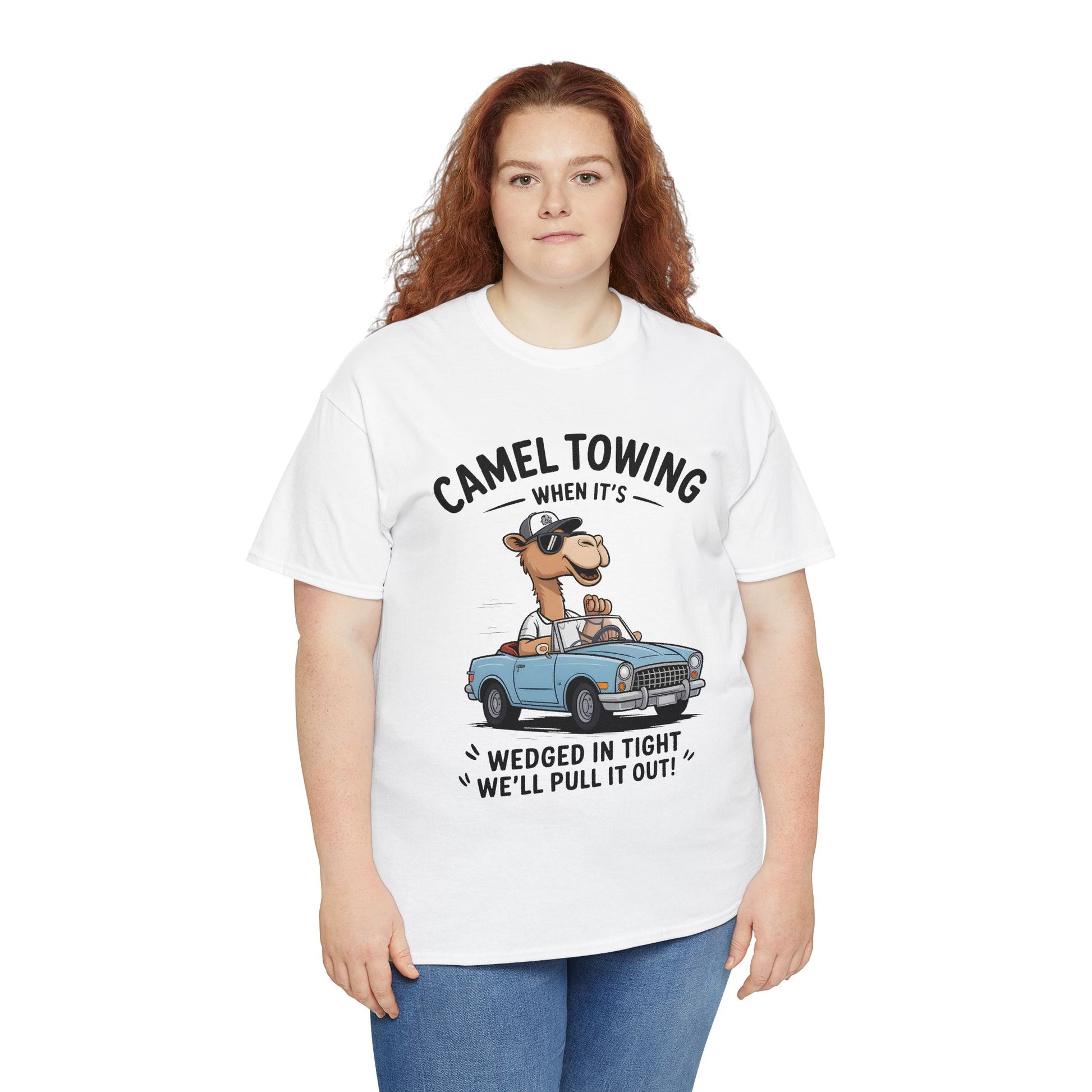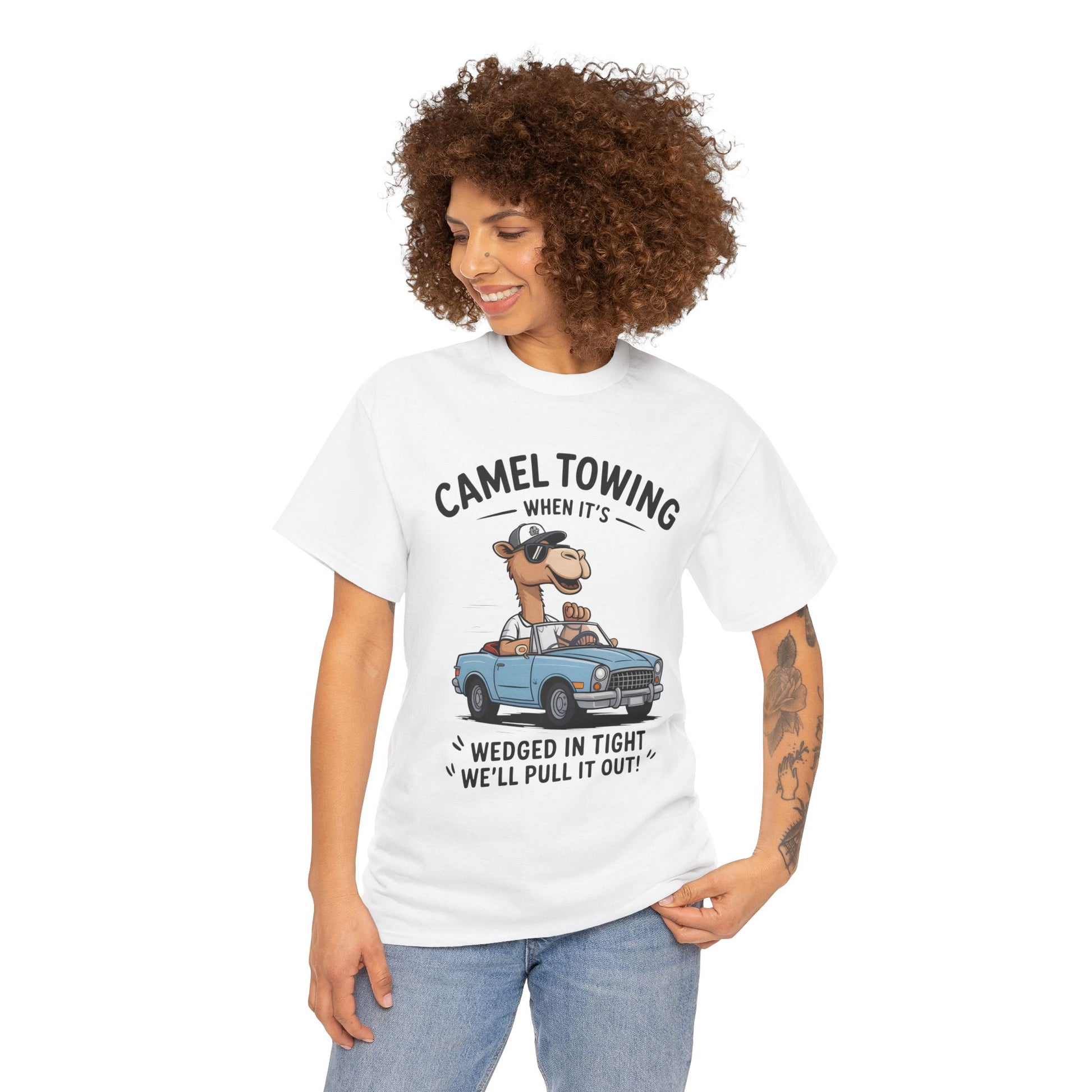 Camel Towing Tee — "When It's Wedged In Tight We'll Pull It Out" Funny Camel Mechanic T-Shirt