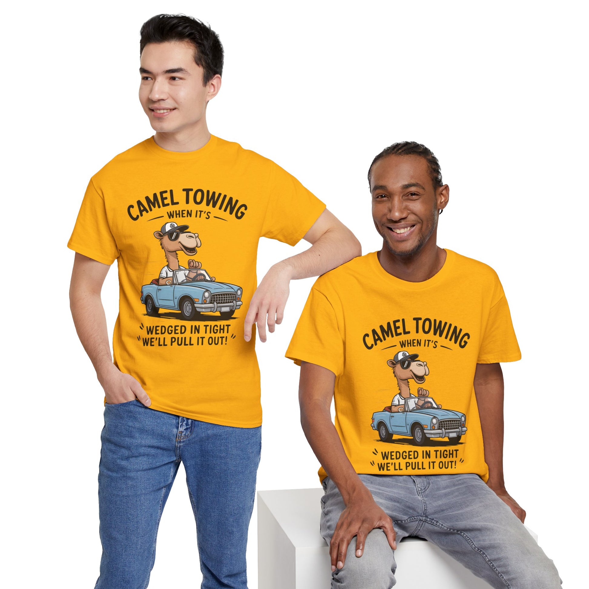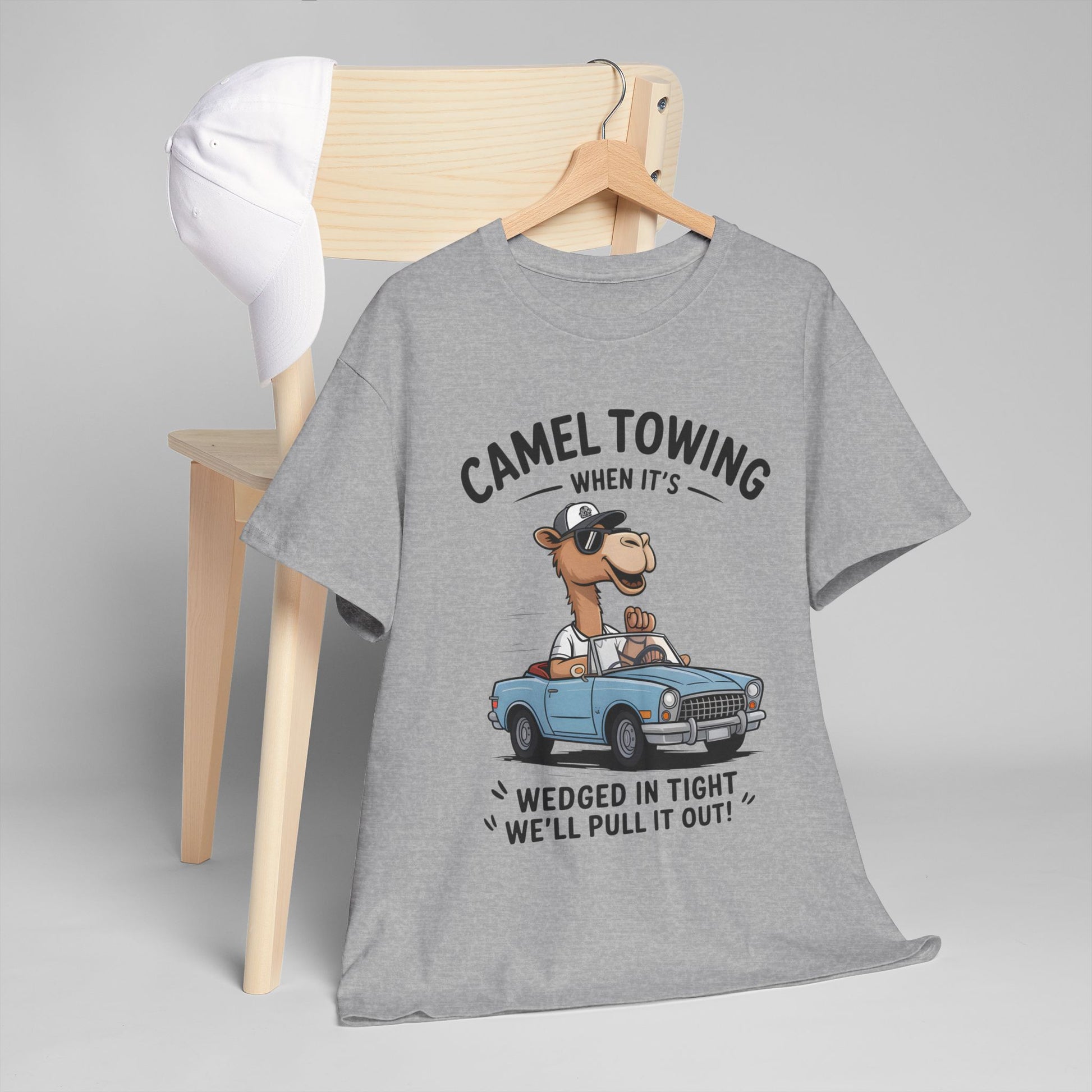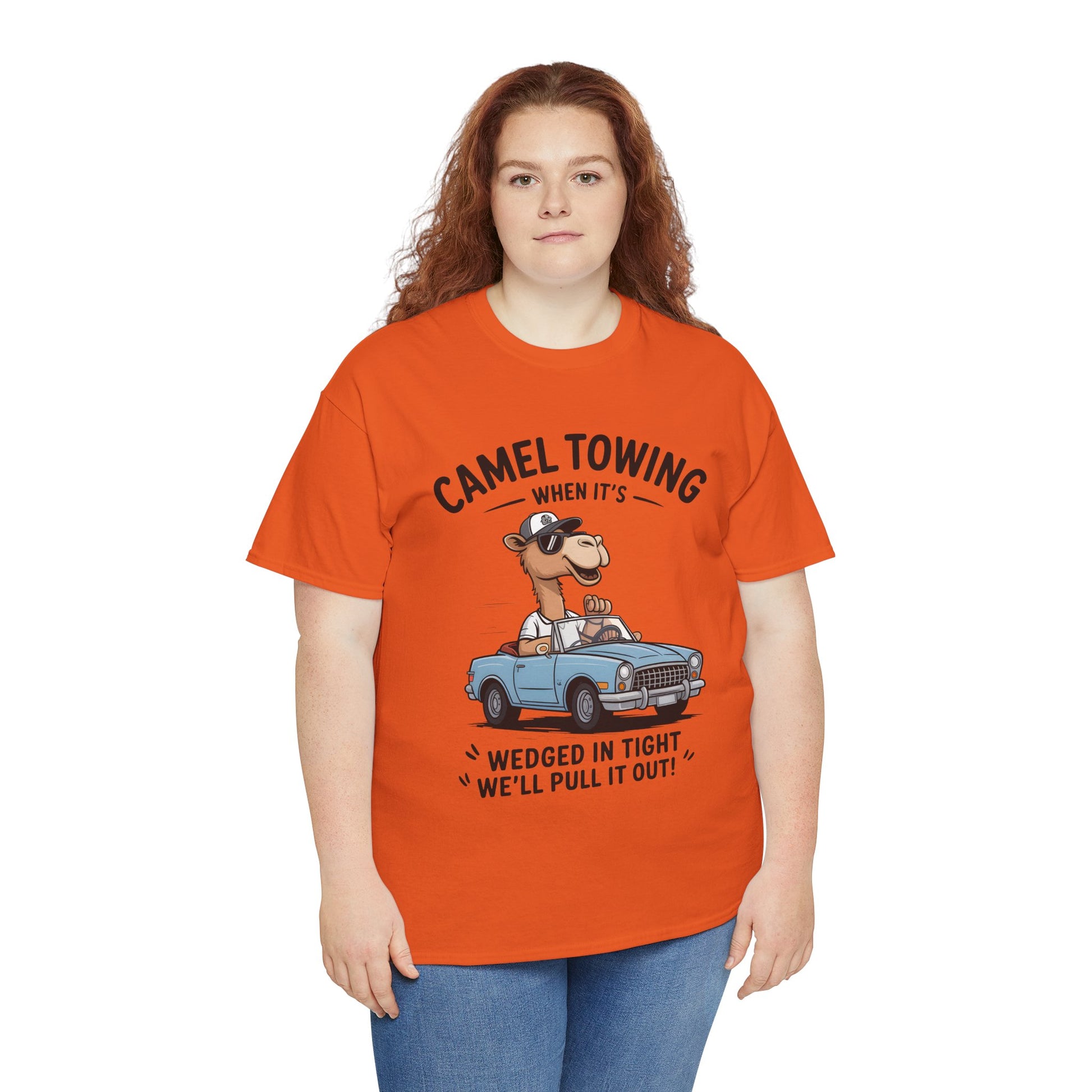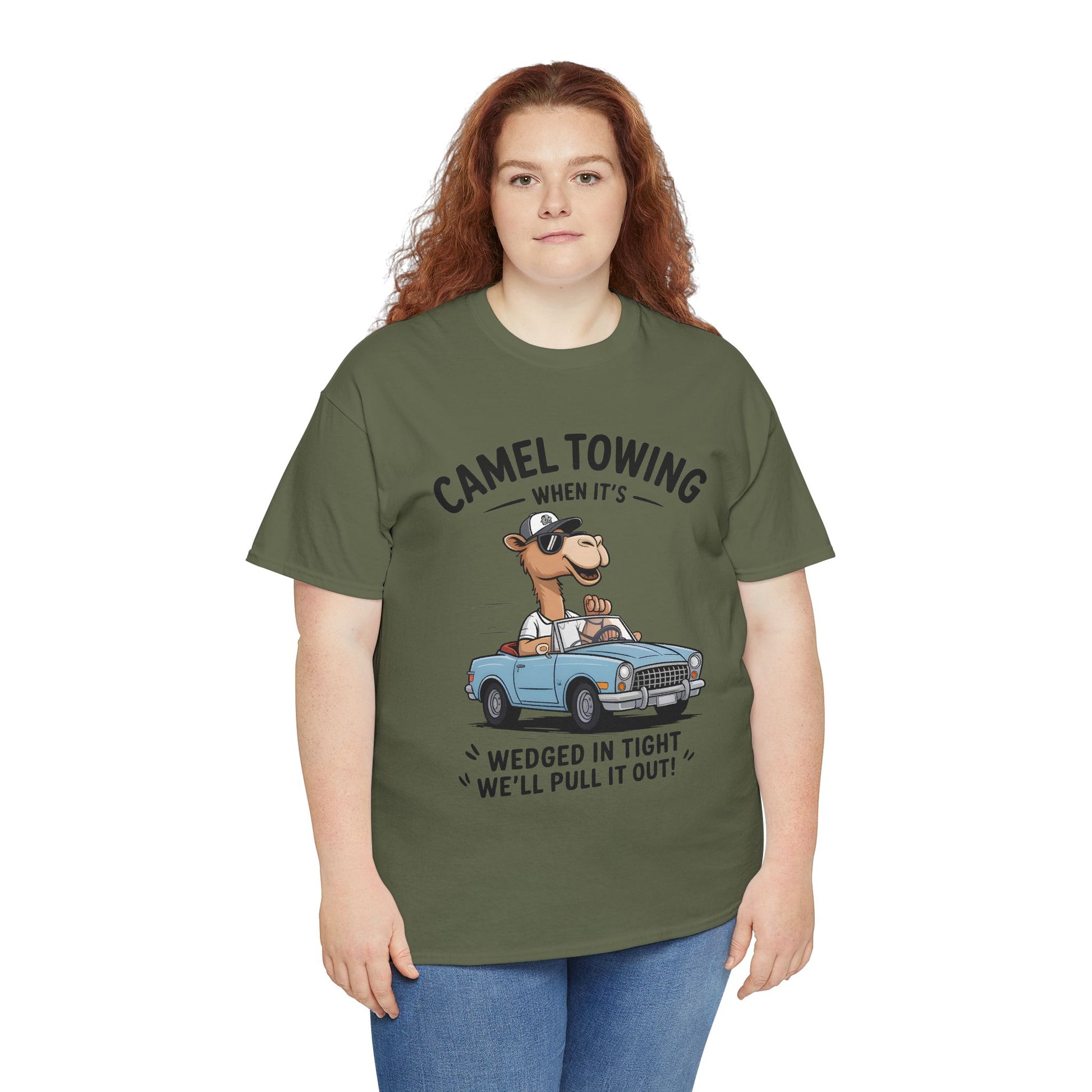 Camel Towing Tee — "When It's Wedged In Tight We'll Pull It Out" Funny Camel Mechanic T-Shirt