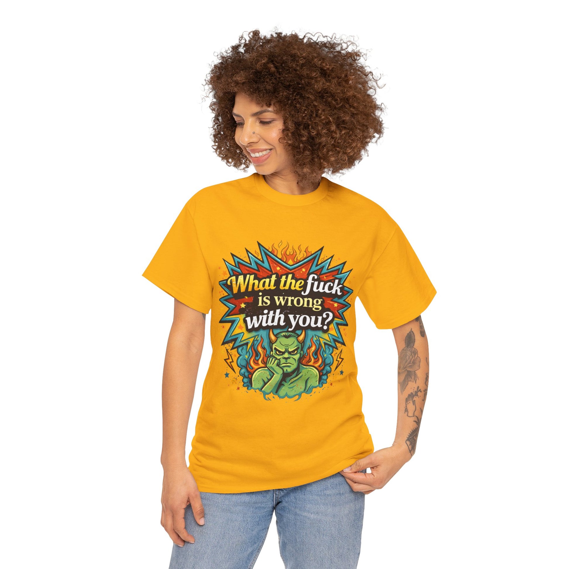 Graphic Tee — "What the F**k Is Wrong With You?" Retro Demon Design