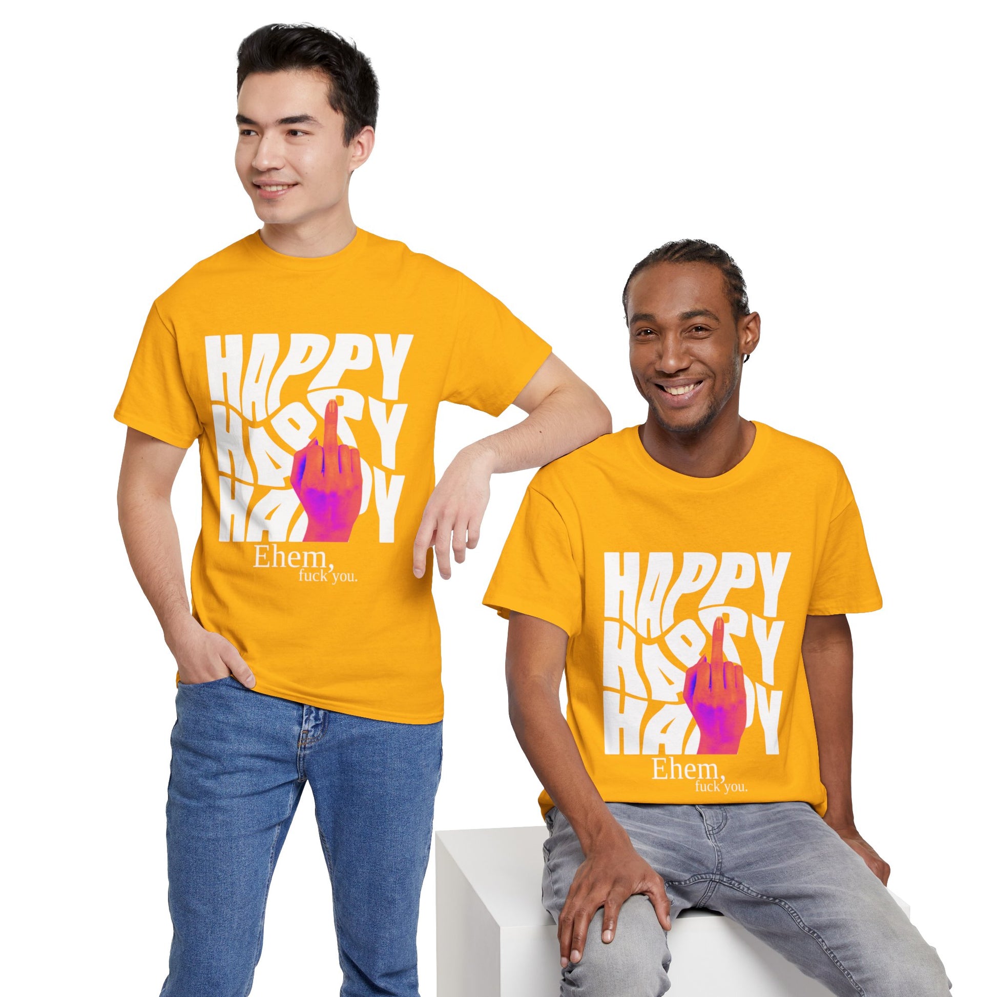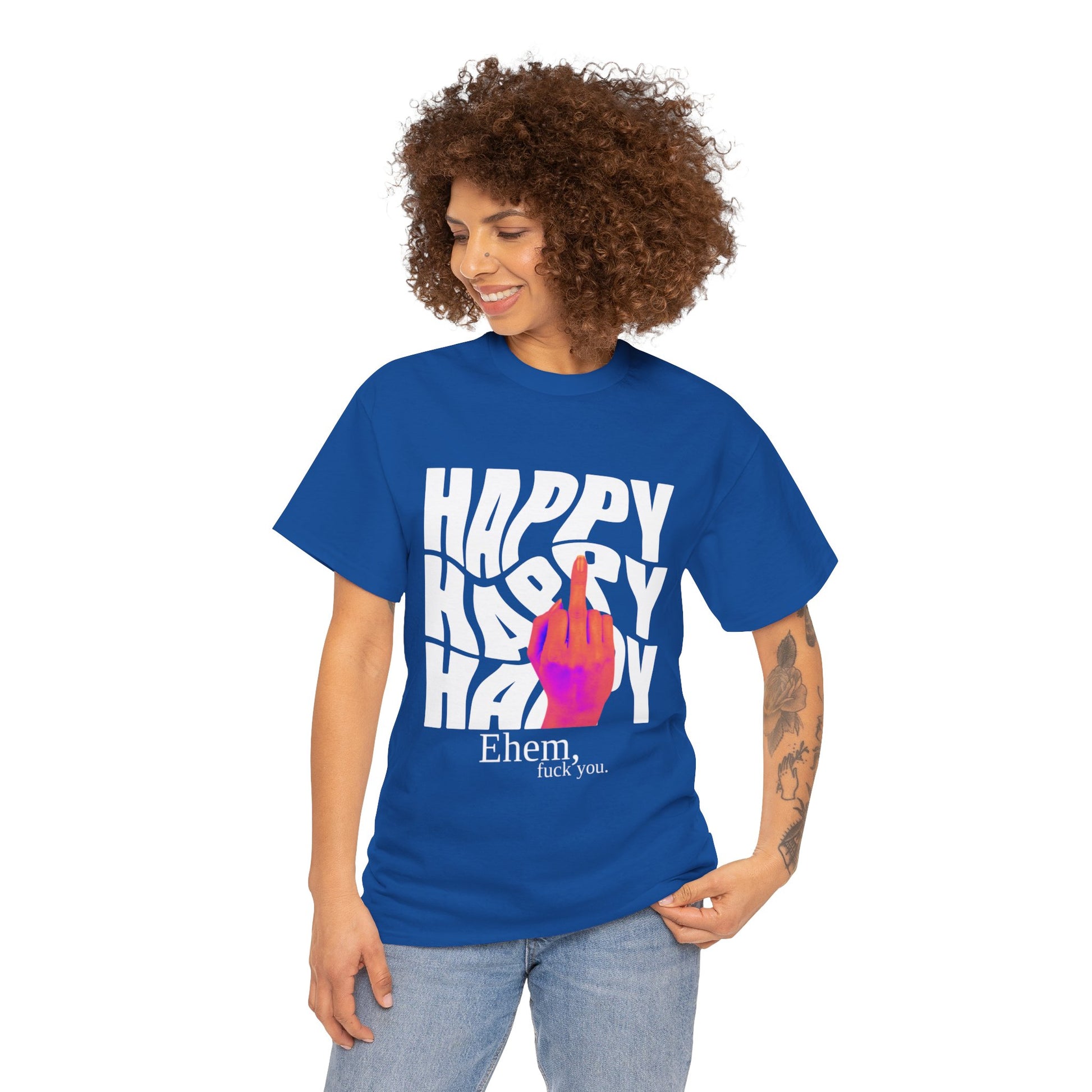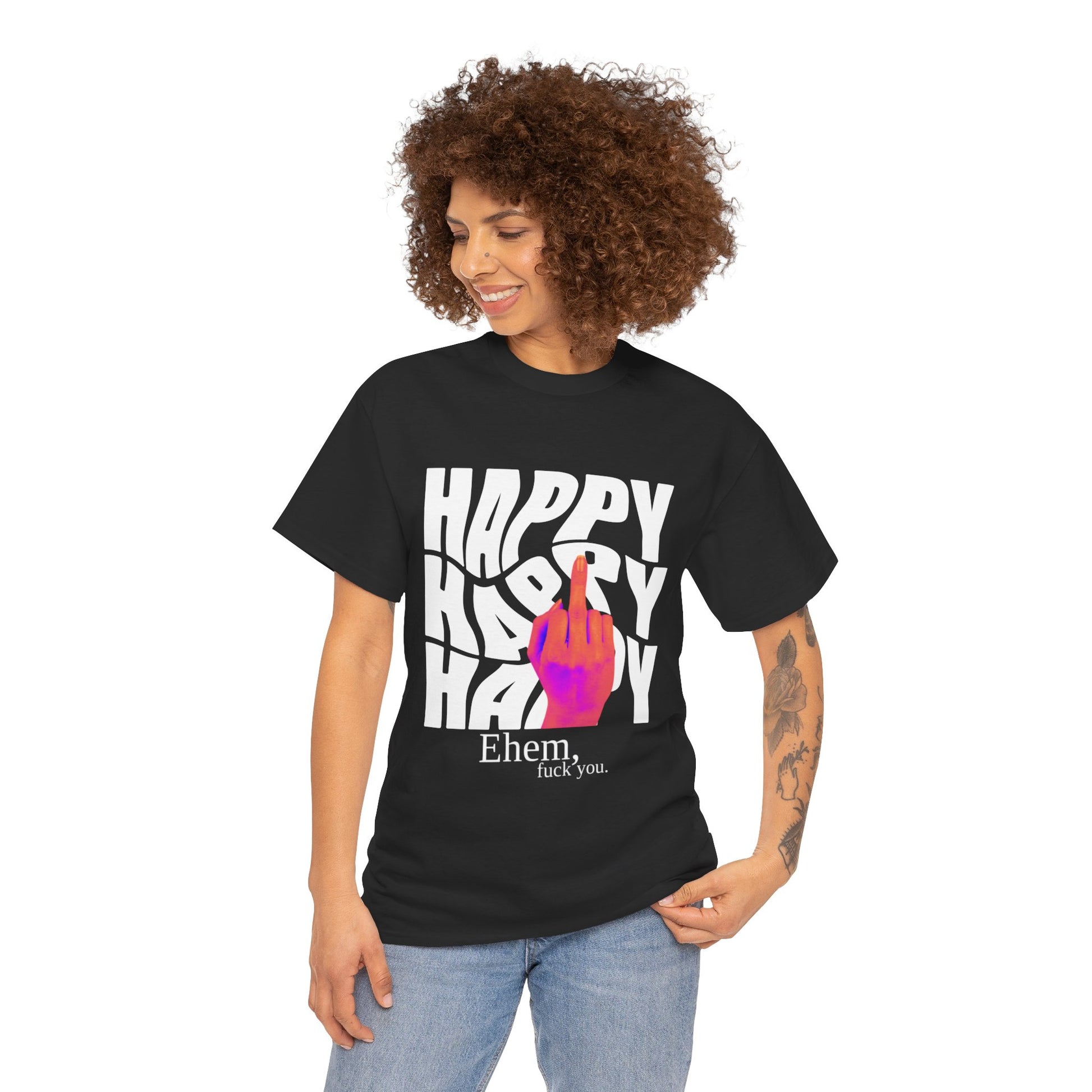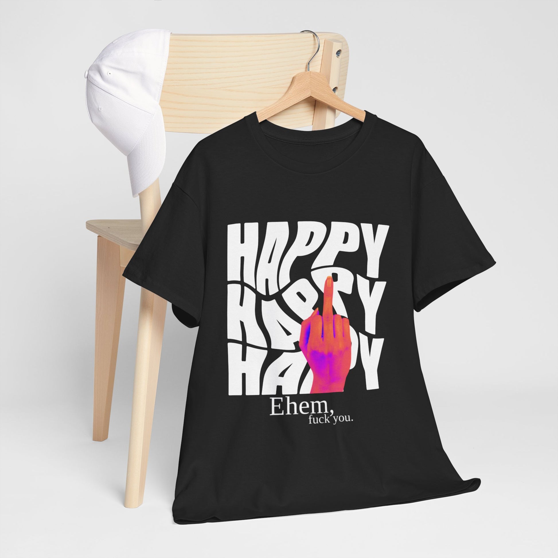 Happy Middle Finger Tee — "Ehem, fuck you." Graphic T-Shirt