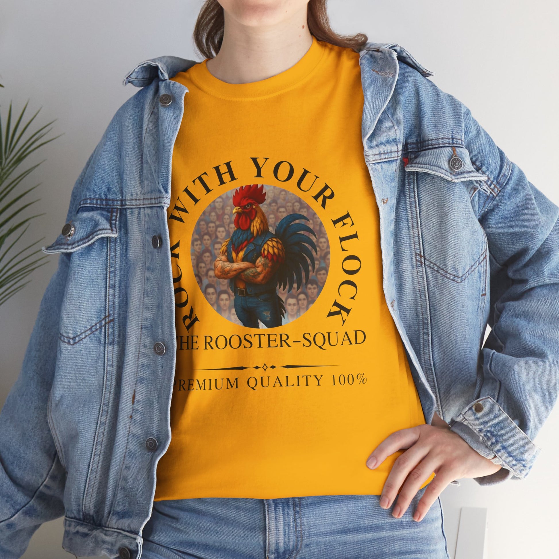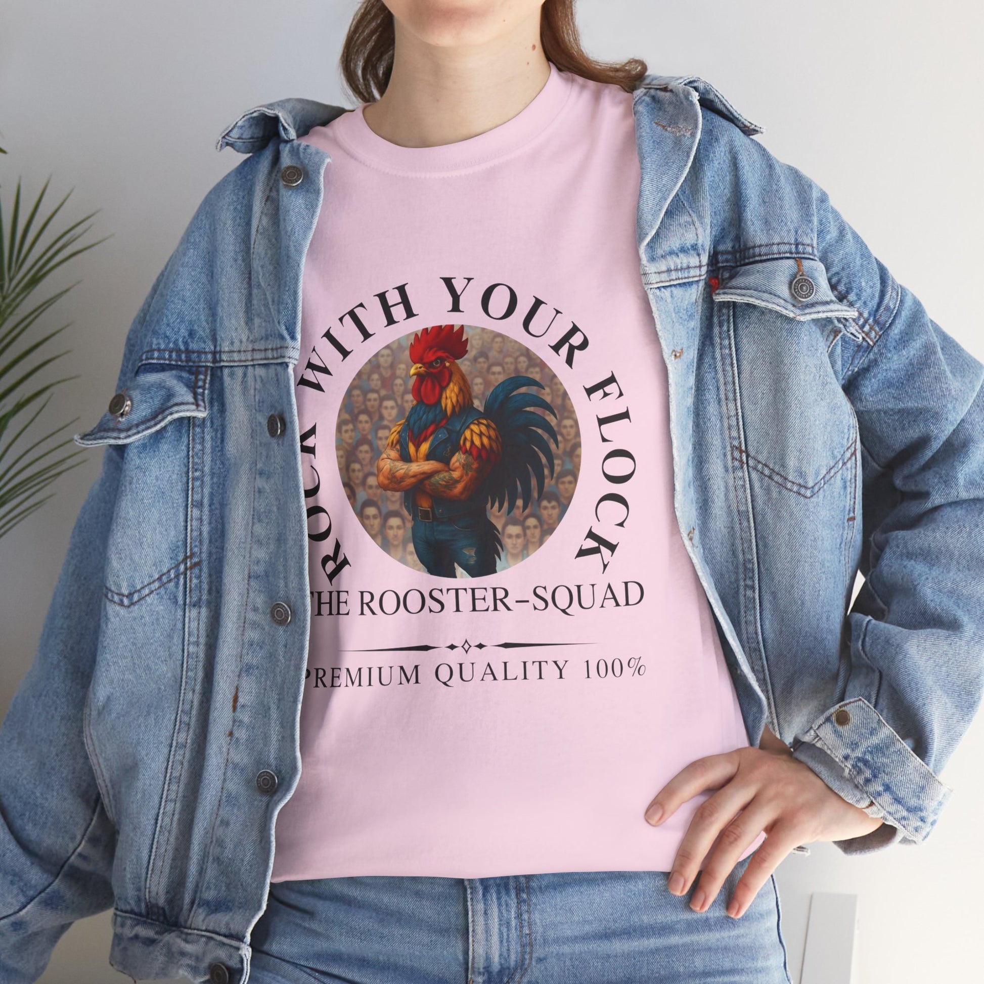 Rooster Squad Tee — "Rock With Your Flock" Vintage Rooster Graphic T-Shirt