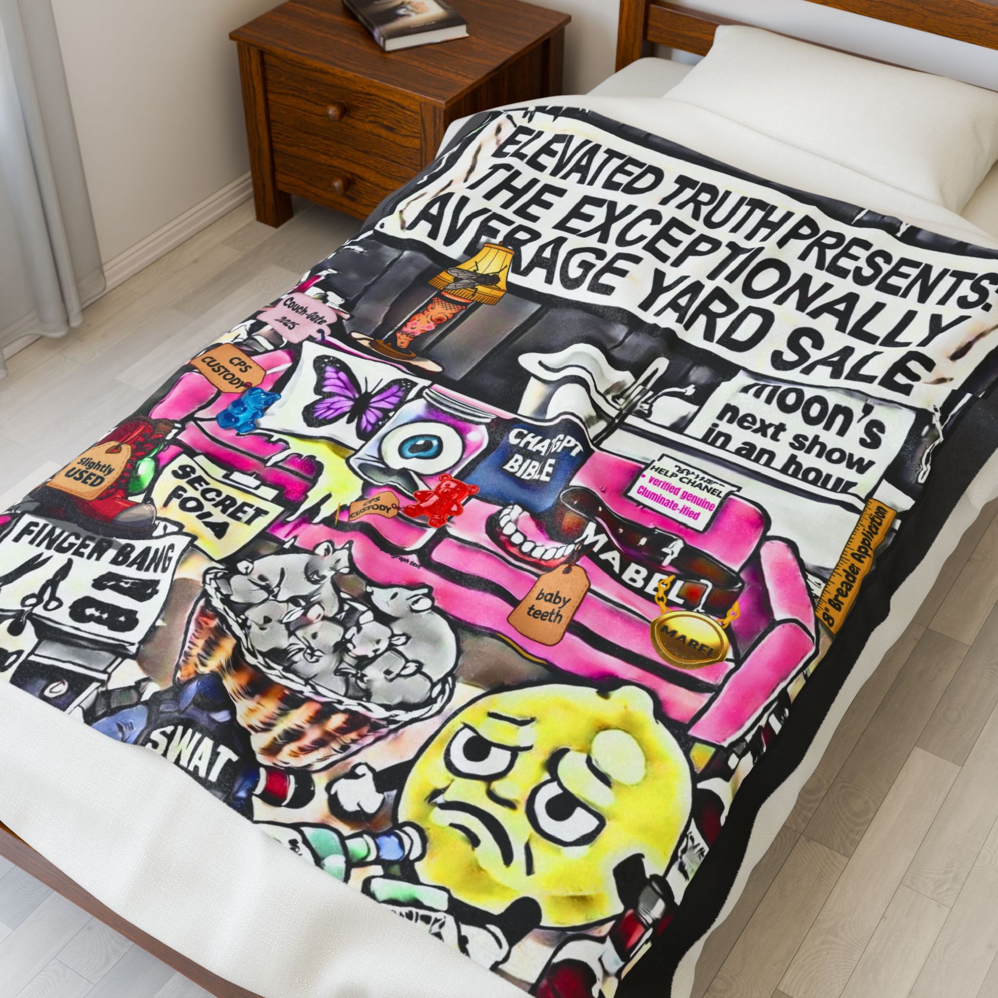 Velveteen Plush Blanket — 'Elevated Truths' Humorous Year‑End Yard Sale Design